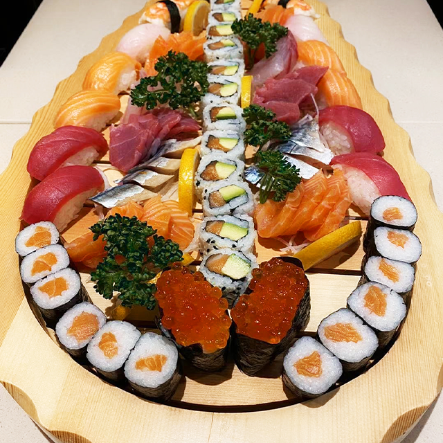 Notre menu comprend une variété de choix alléchants, tels que des sushis frais, des brochettes irrésistibles, des tranches de poisson cru et des plats chauds délicieux.
